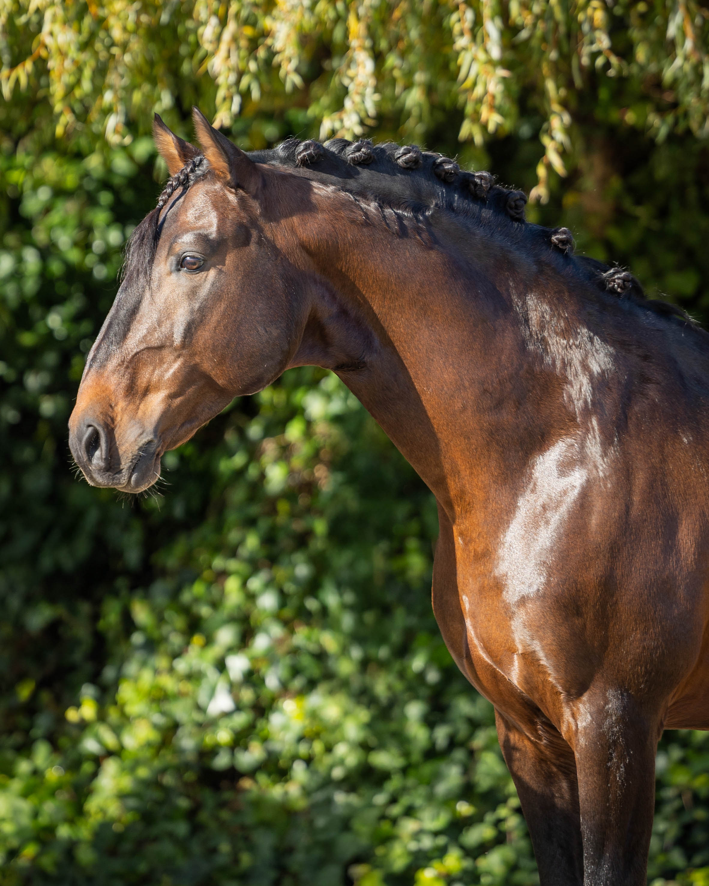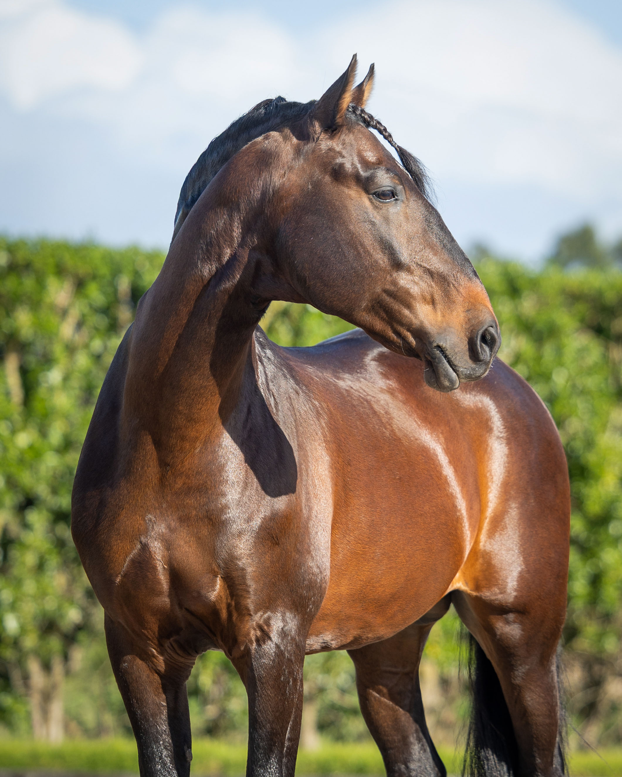 More than anything, he truly enjoys his job! He adapts easily to different riders and takes pride in delivering each exercise with consistency and generosity. He remains unchanged in new environments — focused, willing and always eager to please. On the ground, he is just as straightforward, easy and uncomplicated. Despite being a stallion with active breeding duties, he shows no stallion behaviour at all and can be handled safely even in the presence of mares, making daily management straightforward and stress-free.